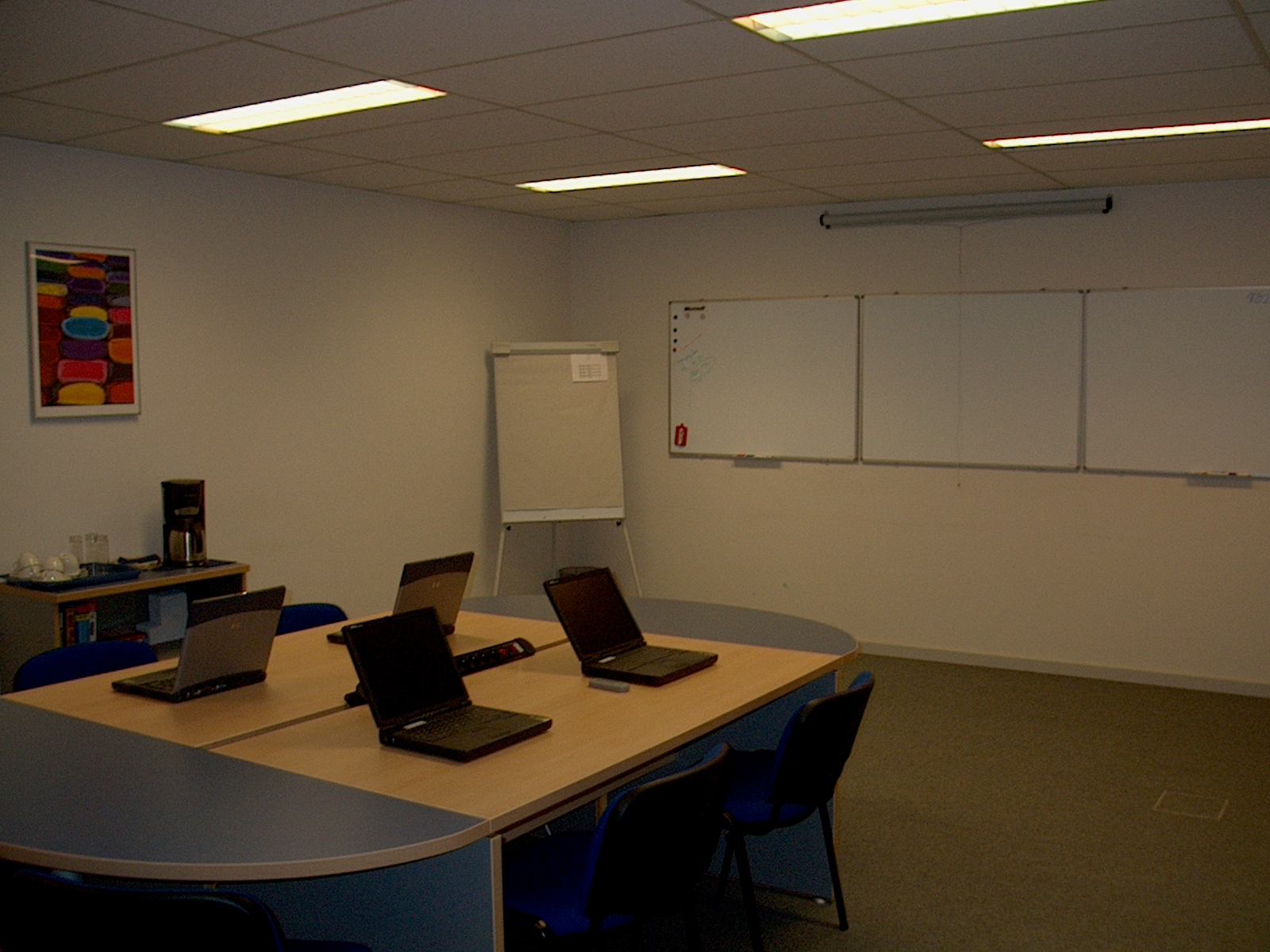 Our Training/Meeting room (below) will easily host up to 6 trainees and a trainer (meeting for 7, 8 persons) The Training room is set in U form enabling higher interaction between participants. |